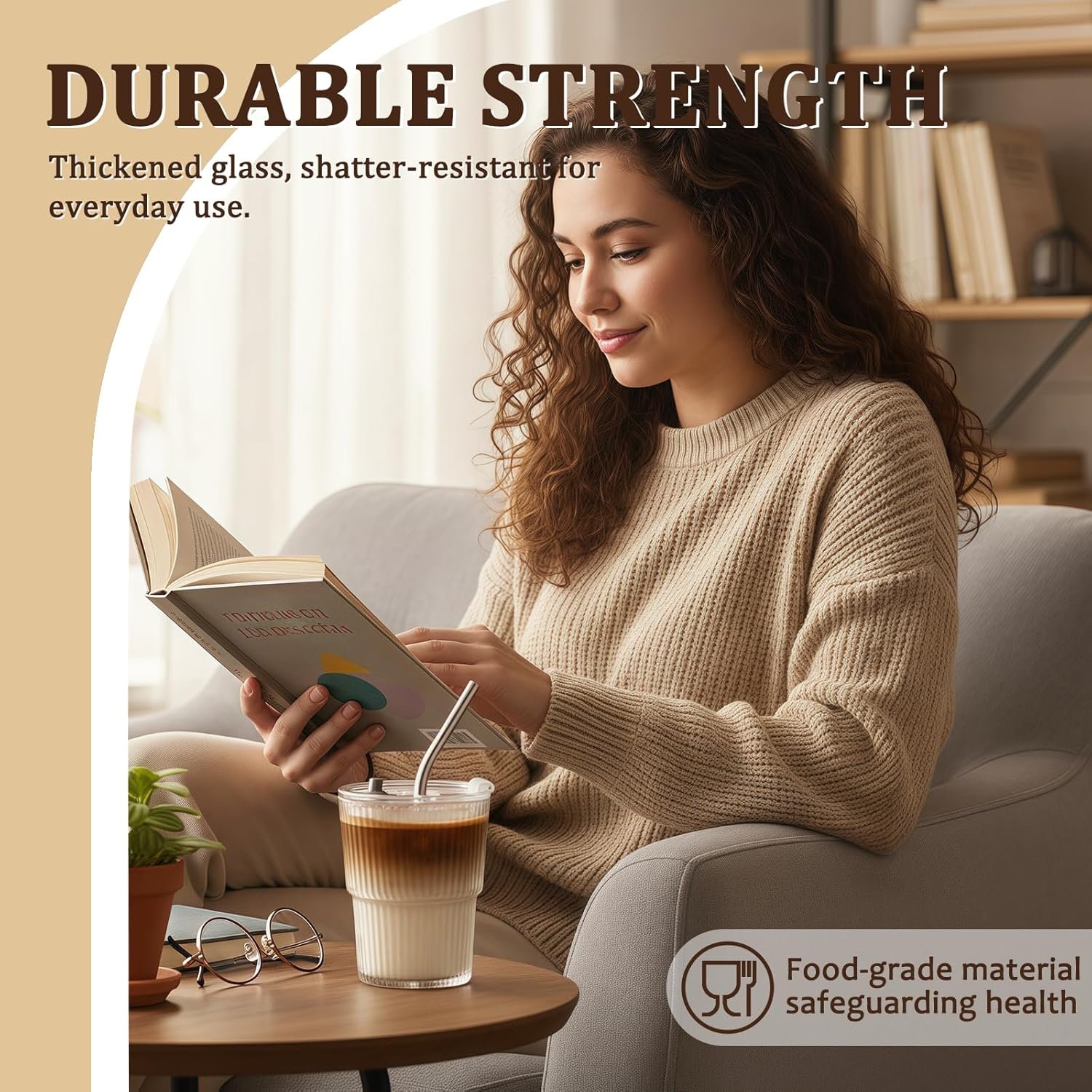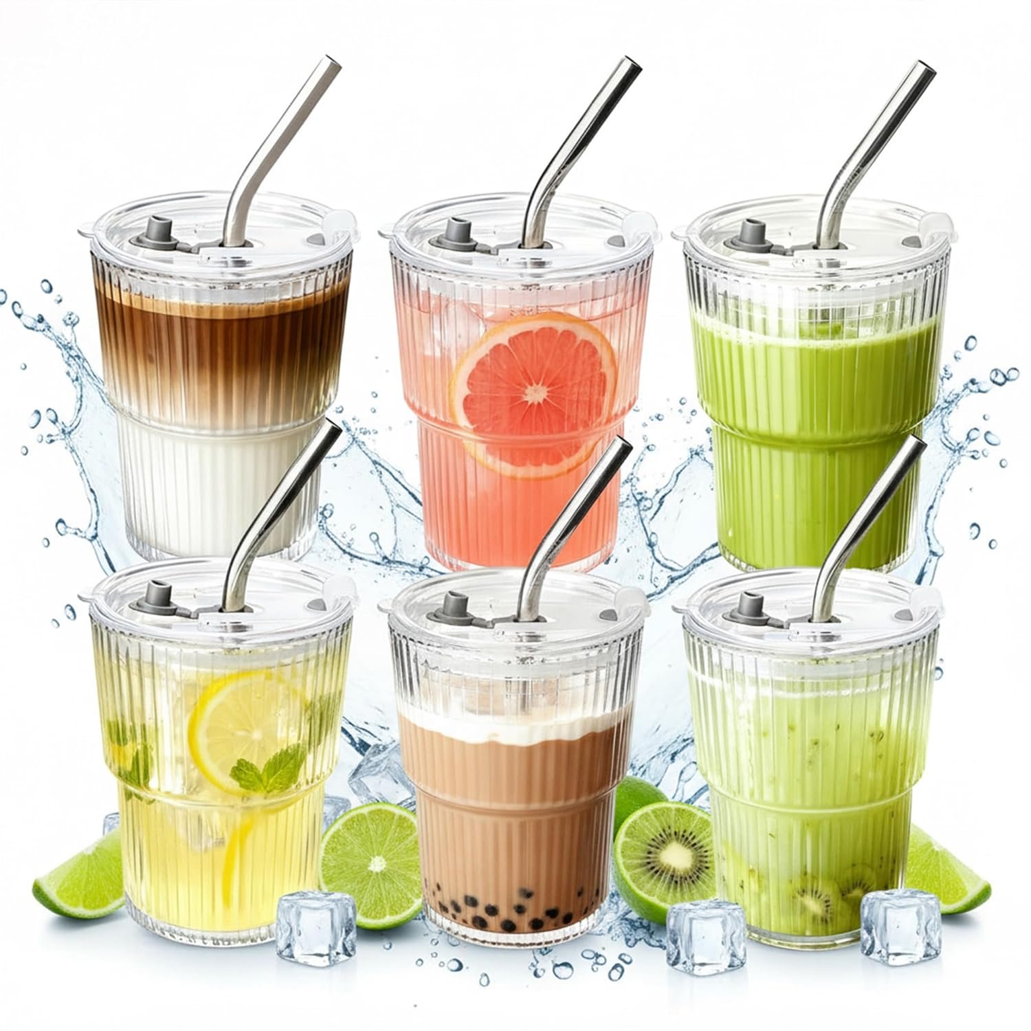 - High-Quality Glass — Clear, Safe, and Reliable Made of high-quality, BPA-free, non-toxic glass for crystal clarity and daily durability. Dishwasher-safe (top rack recommended) and resistant to scratches and odors—ideal for iced coffee, juice, or water. Note: Not designed for sudden hot-to-cold or cold-to-hot changes; avoid rapid temperature shocks.